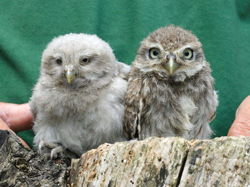The 6 young wild Little Owls, which include the White Little Owlet seen on the web cam, are with us because of the problems they had encountered in the wild.